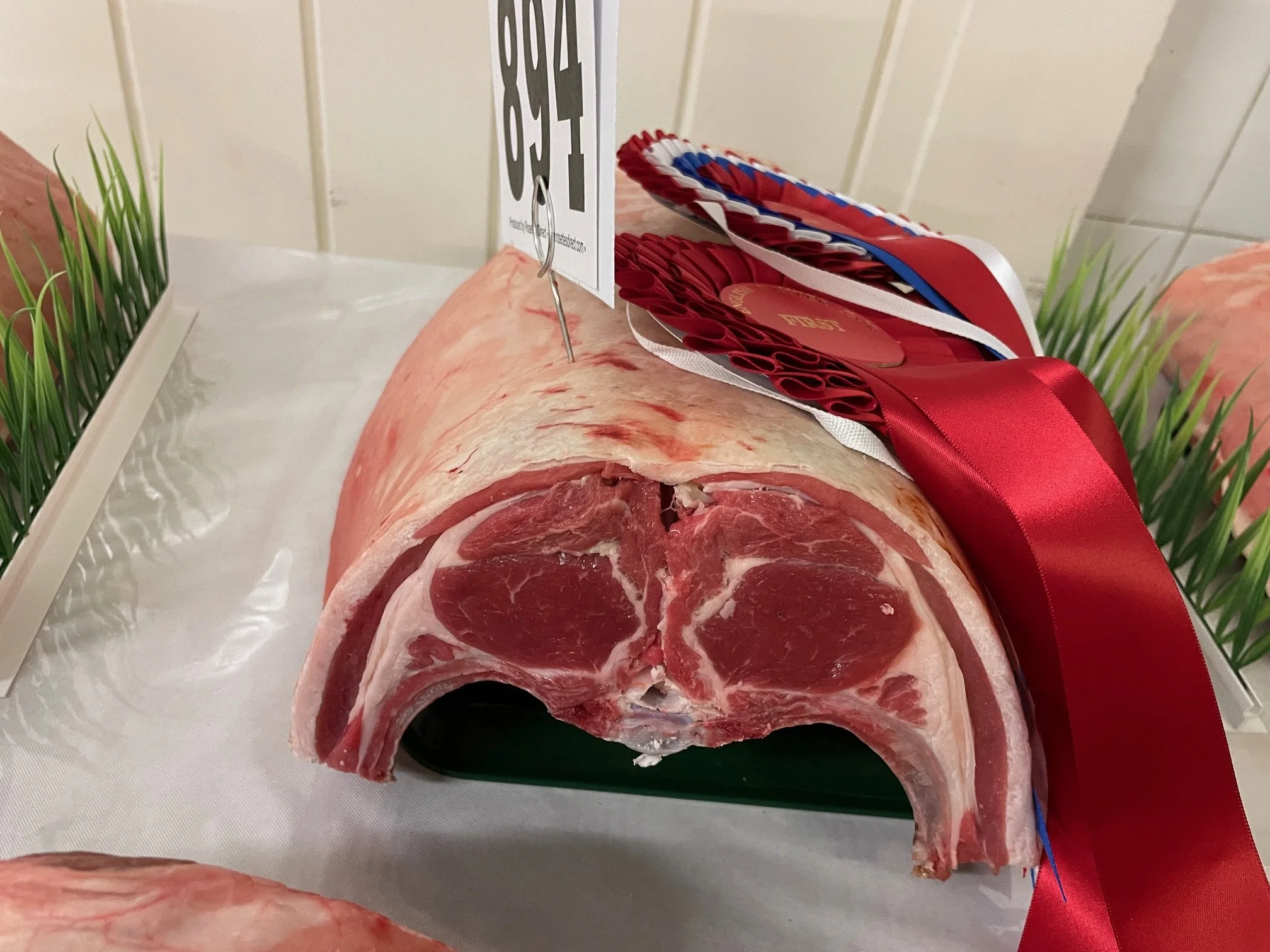 The Perpetual Lamb Saddle Trophy was awarded to Greenfields Farmers & Butchers with their 23kg Texel-cross described as having ‘great thickness of eye muscle and length’ by the judge. The reserve title went to Stanedge Grange Butchery with another Texel-sired lamb.